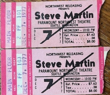 The one the only Steve Martin. Weirdly he was my role model back in the late ‘70s. On 10-7-77 he made me small in front of a sold-out Paramount Seattle crowd. Reeeeeel small….